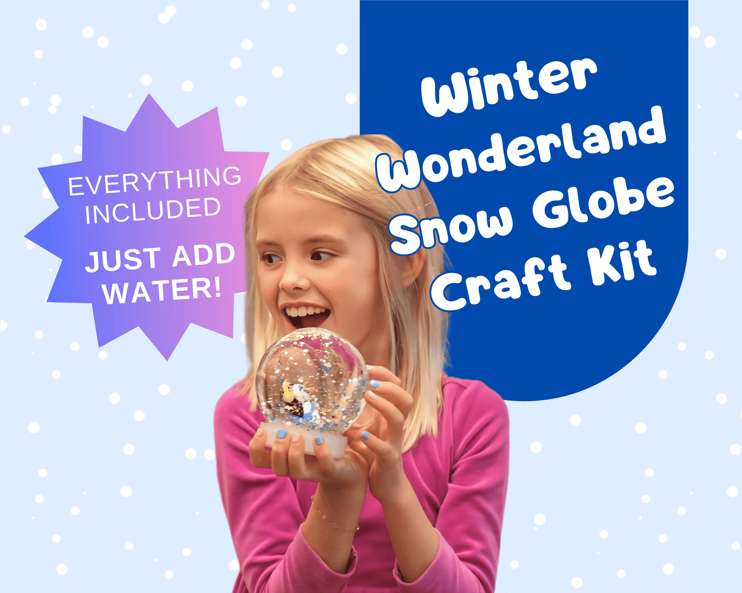 Transform your snow globe into a winter wonderland! Your kit comes with a shatterproof snow globe, a winter-themed character, festive glitter packets, and glycerin to capture the magic of a snowy day—just add water and shake up the fun!