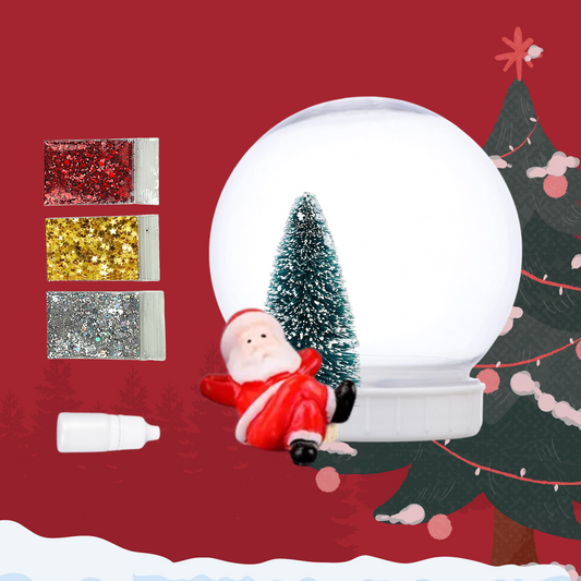 Bring the magic of Santa’s Workshop to life! Each kit includes a shatterproof snow globe, your chosen Santa figurine, three festive glitter packets, and glycerin to create a sparkling holiday scene—just add water and shake up the fun!