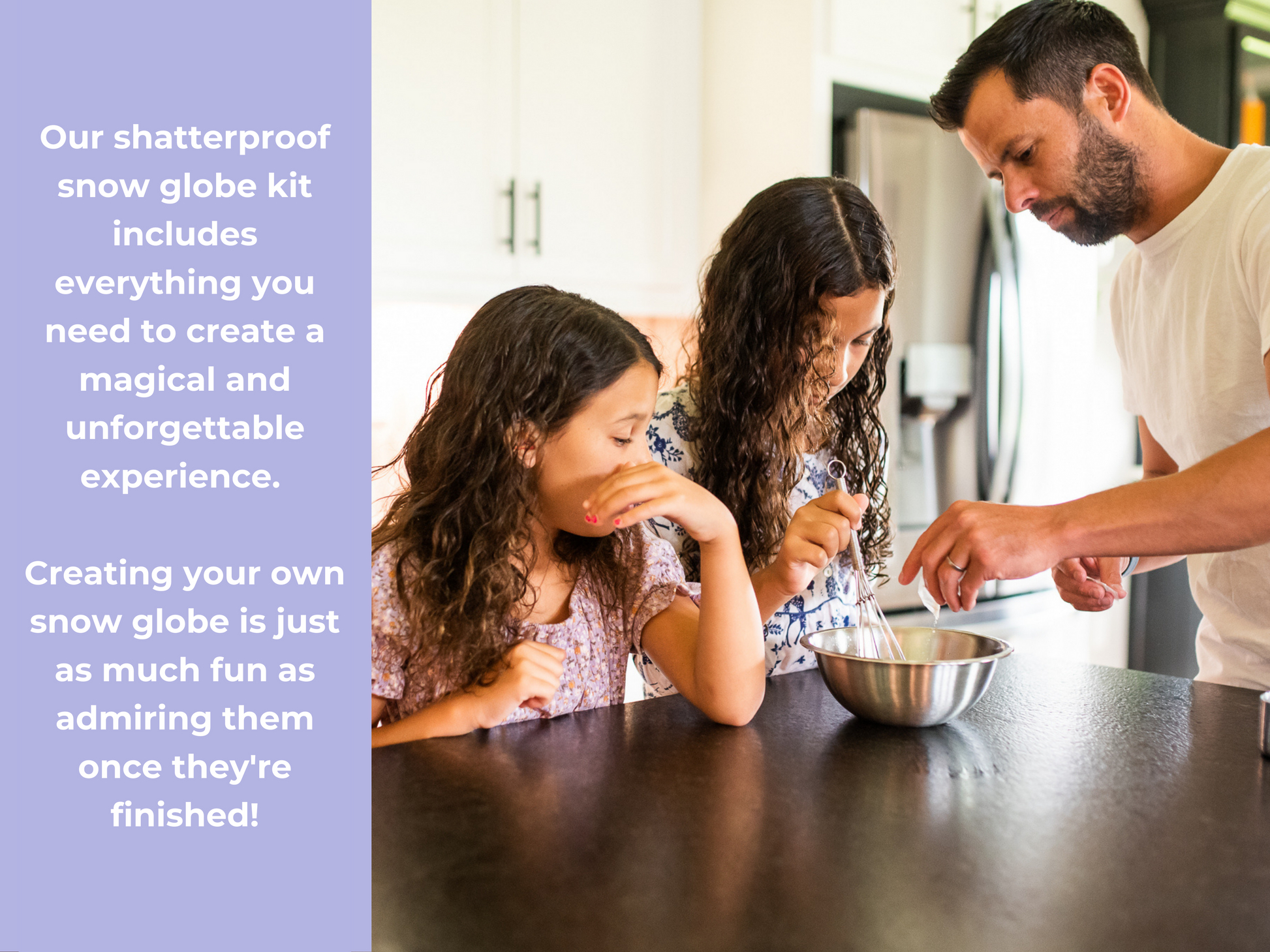 "The moment my son saw the glitter swirl in his snow globe, his face lit up! This kit made crafting easy, mess-free, and so magical. I love that it’s shatterproof—I don’t have to worry about accidents!"